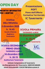 DATE OPEN DAY DELLE SCUOLE PRIMARIE DI ALBESE E TAVERNERIO A.S. 2026_27